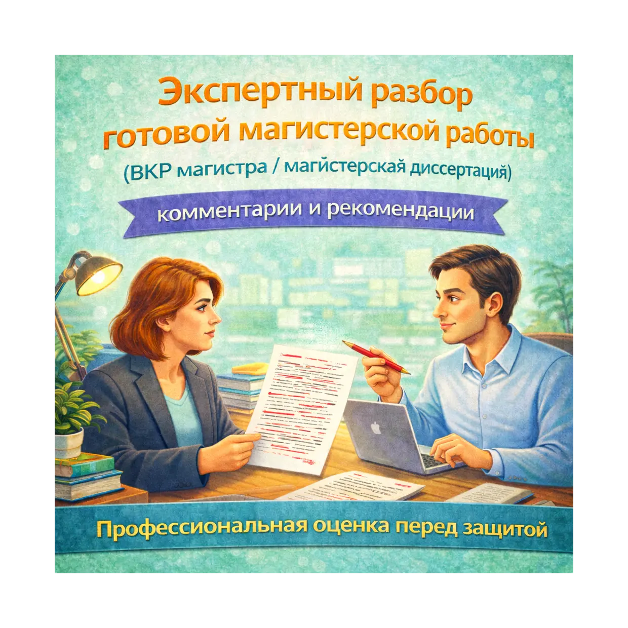 Специалист проводит детальный анализ готовой магистерской работы и предоставляет развернутые комментарии, помогая выявить слабые места, логические и методические несоответствия, а также зоны для улучшения с учетом требований конкретного вуза, образовательной программы и методических указаний.